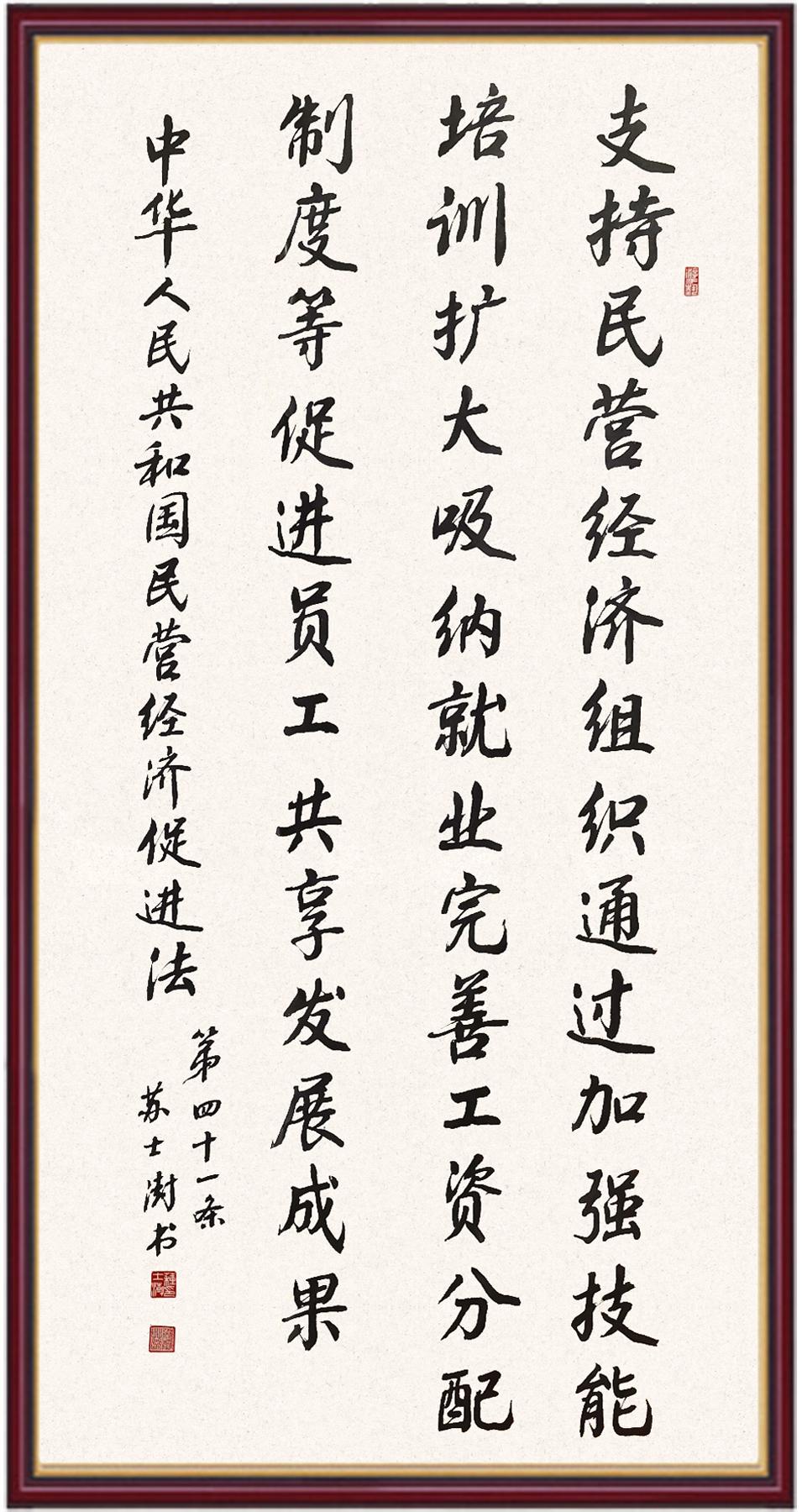 《中華人民共和國民營經(jīng)濟(jì)促進(jìn)法》自今年5月20日起施行。作為我國首部專門關(guān)于民營經(jīng)濟(jì)發(fā)展的基礎(chǔ)性法律,民營經(jīng)濟(jì)促進(jìn)法將支持和保障民營經(jīng)濟(jì)發(fā)展的法律制度融入中國特色社會主義法律體系,具有重大的法治意義,為促進(jìn)民營經(jīng)濟(jì)持續(xù)、健康、高質(zhì)量發(fā)展提供了堅(jiān)實(shí)的法治保障。為更好地學(xué)習(xí)、宣傳、貫徹這部法律,法治日報社聯(lián)合司法部普法與依法治理局,開展“‘書·法’系列活動之書寫《中華人民共和國民營經(jīng)濟(jì)促進(jìn)法》”活動。