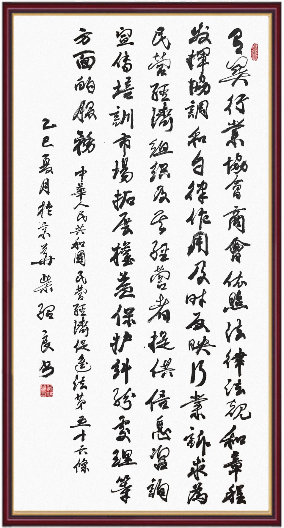 《中華人民共和國(guó)民營(yíng)經(jīng)濟(jì)促進(jìn)法》自今年5月20日起施行。作為我國(guó)首部專門關(guān)于民營(yíng)經(jīng)濟(jì)發(fā)展的基礎(chǔ)性法律,民營(yíng)經(jīng)濟(jì)促進(jìn)法將支持和保障民營(yíng)經(jīng)濟(jì)發(fā)展的法律制度融入中國(guó)特色社會(huì)主義法律體系,具有重大的法治意義,為促進(jìn)民營(yíng)經(jīng)濟(jì)持續(xù)、健康、高質(zhì)量發(fā)展提供了堅(jiān)實(shí)的法治保障。為更好地學(xué)習(xí)、宣傳、貫徹這部法律,法治日?qǐng)?bào)社聯(lián)合司法部普法與依法治理局,開展“‘書·法’系列活動(dòng)之書寫《中華人民共和國(guó)民營(yíng)經(jīng)濟(jì)促進(jìn)法》”活動(dòng)。