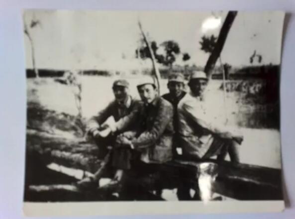 1947年秋人民解放軍大反攻,新華社華東前線分社記者(莊重同志位于右一)隨大軍渡過黃河南下中原時(shí)攝于黃河岸上。