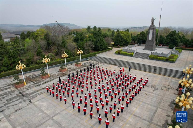 3月30日,學(xué)生在皖東烈士陵園祭奠先烈(無(wú)人機(jī)照片)。