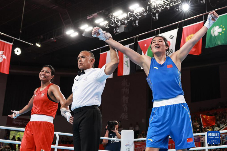 當(dāng)日,在杭州亞運(yùn)會(huì)拳擊項(xiàng)目女子75公斤級(jí)決賽中,中國選手李倩戰(zhàn)勝印度選手洛夫利娜·博爾戈哈因,獲得冠軍。