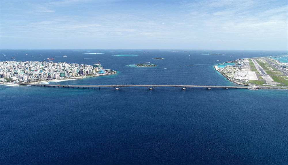 這是航拍的連接馬爾代夫首都馬累和機場島的中馬友誼大橋(2019年8月30日攝)。新華社發(fā)(王明亮攝)