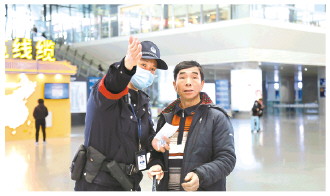 “指揮室,麻煩你們查一下這位乘客的乘車信息。”“服務(wù)臺,麻煩你們廣播一下,讓乘客來警務(wù)服務(wù)站這里。”高明偉用對講機向派出所指揮室與車站服務(wù)臺發(fā)送服務(wù)需求。3分鐘后,指揮室反饋張女士乘坐的車還未開始檢票,其應(yīng)該還在候車廳內(nèi),這時車站廣播也同步響起。