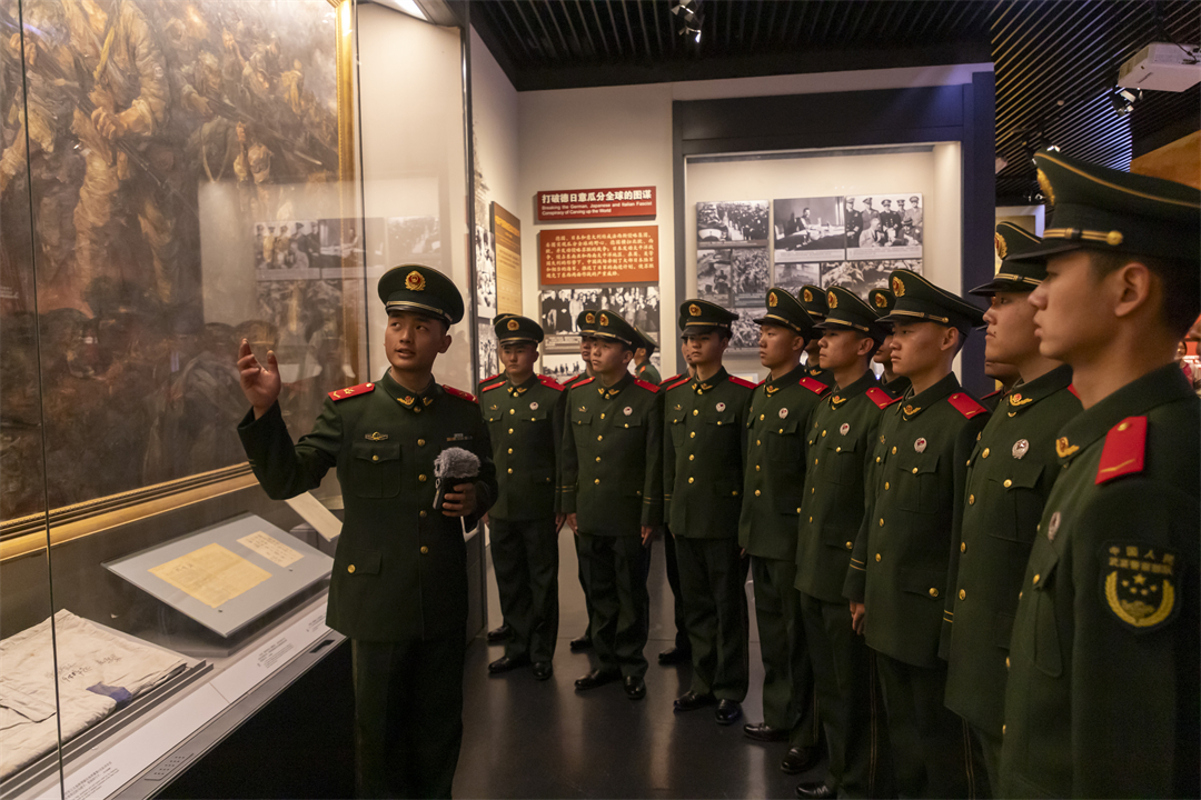 “在迎擊敵人的最后一次反撲中,劉老莊八十二烈士與敵人展開(kāi)白刃戰(zhàn)……”在中國(guó)人民抗日戰(zhàn)爭(zhēng)紀(jì)念館中,武警北京總隊(duì)某支隊(duì)“紅肩章”理論宣講隊(duì)成員肖志尹正在向戰(zhàn)友們講述著他整理的英雄先烈的故事,將自身感受分享給大家,點(diǎn)燃官兵矢志奮斗強(qiáng)軍的熱情。