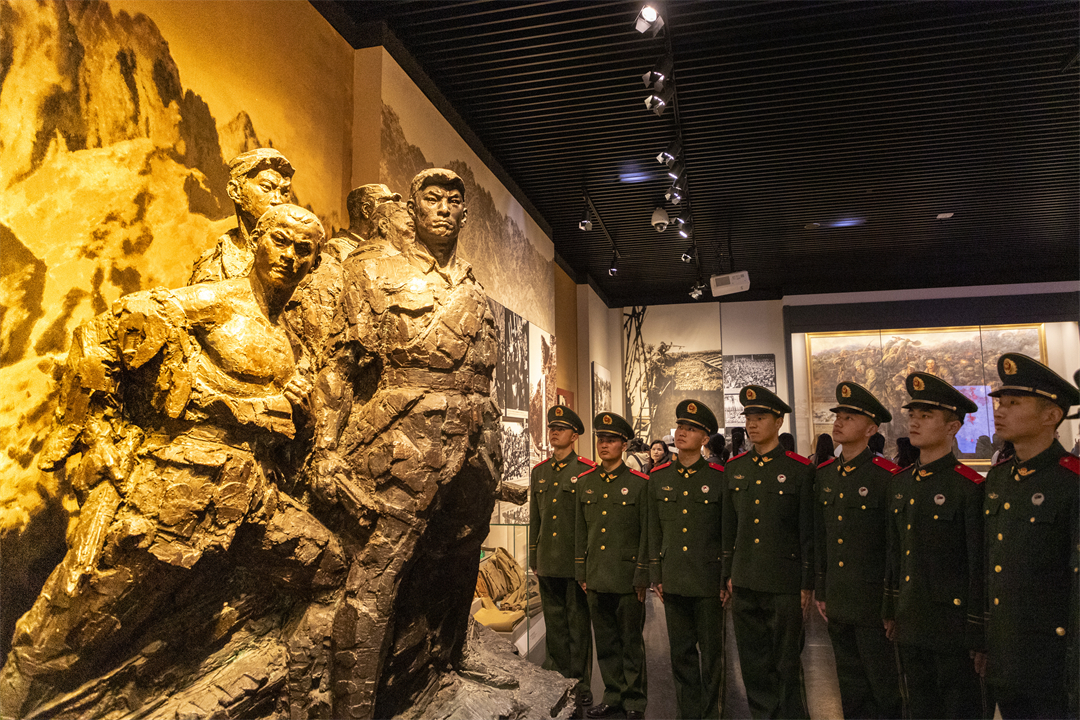 官兵整齊列隊(duì)進(jìn)入紀(jì)念館。