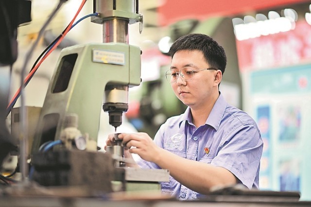 時光沒有辜負(fù)楊國心的努力。在第十六屆振興杯全國青年職業(yè)技能大賽上,他站上了模具工項目的冠軍領(lǐng)獎臺。