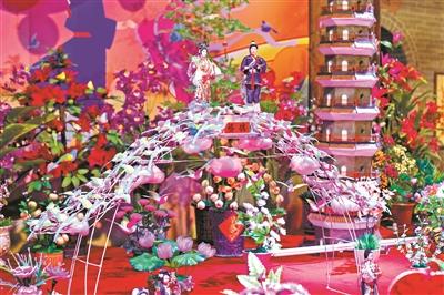 天河珠村明德堂內(nèi)的乞巧作品“鵲橋”