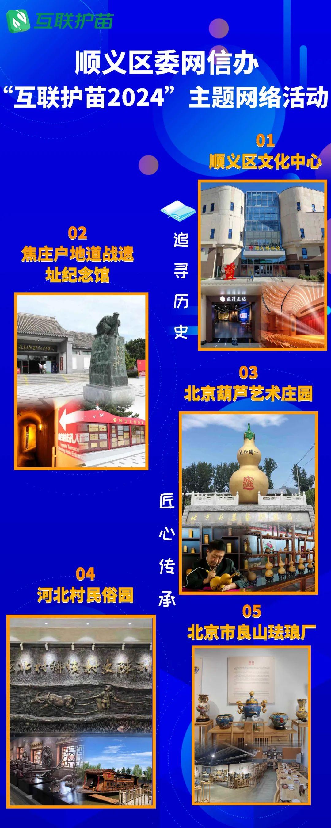 聯(lián)合區(qū)文旅局推出“追尋歷史,匠心傳承”研學路線(納入市級6條推廣線路之一),設置順義區(qū)文化中心、焦莊戶地道戰(zhàn)遺址紀念館、北京葫蘆藝術(shù)莊園、河北村民俗園、北京市良山琺瑯廠,共五個點位,學生可通過現(xiàn)場打卡、游歷體驗等開展非遺、愛國主義教育等社會實踐活動,并已通過高德、百度、美團進行線上發(fā)布。