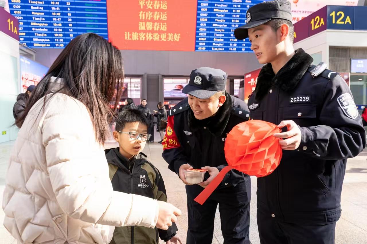 2月12日是農歷元宵佳節(jié),北京鐵路公安處北京南站派出所民警走到旅客中間,開展安全出行猜燈謎活動。據(jù)悉,鐵路民警制作的燈謎謎面涵蓋反詐宣傳、乘車安全、平安出行常識等內容,并結合春運出行,提醒旅客旅途中提高安全防范意識。