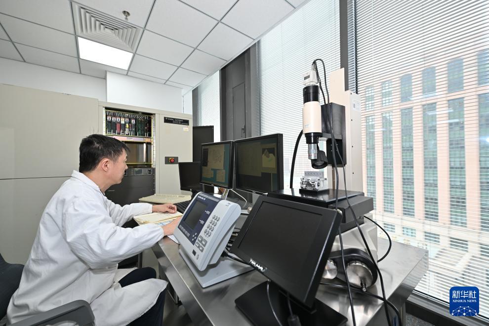 在天津陳塘科技商務(wù)區(qū)天津知微材料科技有限公司,檢測人員在進(jìn)行材料分析(3月26日攝)。