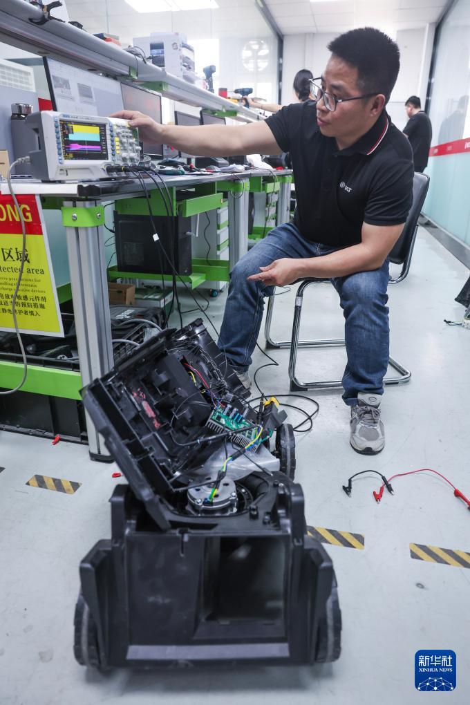 3月26日,在位于嘉興南湖區(qū)余新鎮(zhèn)的浙江亞特電器股份有限公司測(cè)試車間內(nèi),工作人員在對(duì)園林工具進(jìn)行測(cè)試。