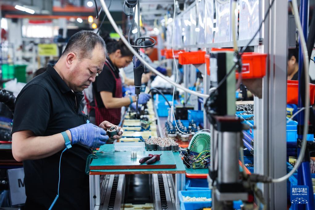 3月26日,在位于嘉興南湖區(qū)余新鎮(zhèn)的浙江亞特電器股份有限公司生產(chǎn)車間,工作人員對(duì)出口的園林工具進(jìn)行組裝。