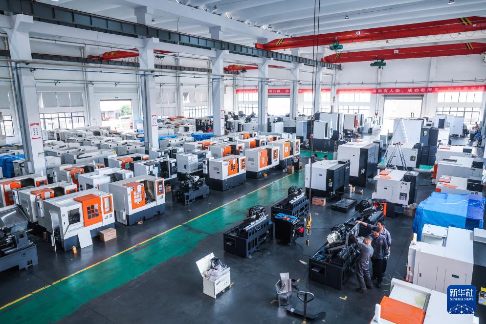 3月26日,在位于嘉興南湖區(qū)大橋鎮(zhèn)的浙江邁興途智能裝備股份有限公司車間內(nèi),工作人員在生產(chǎn)組裝智能化機床。