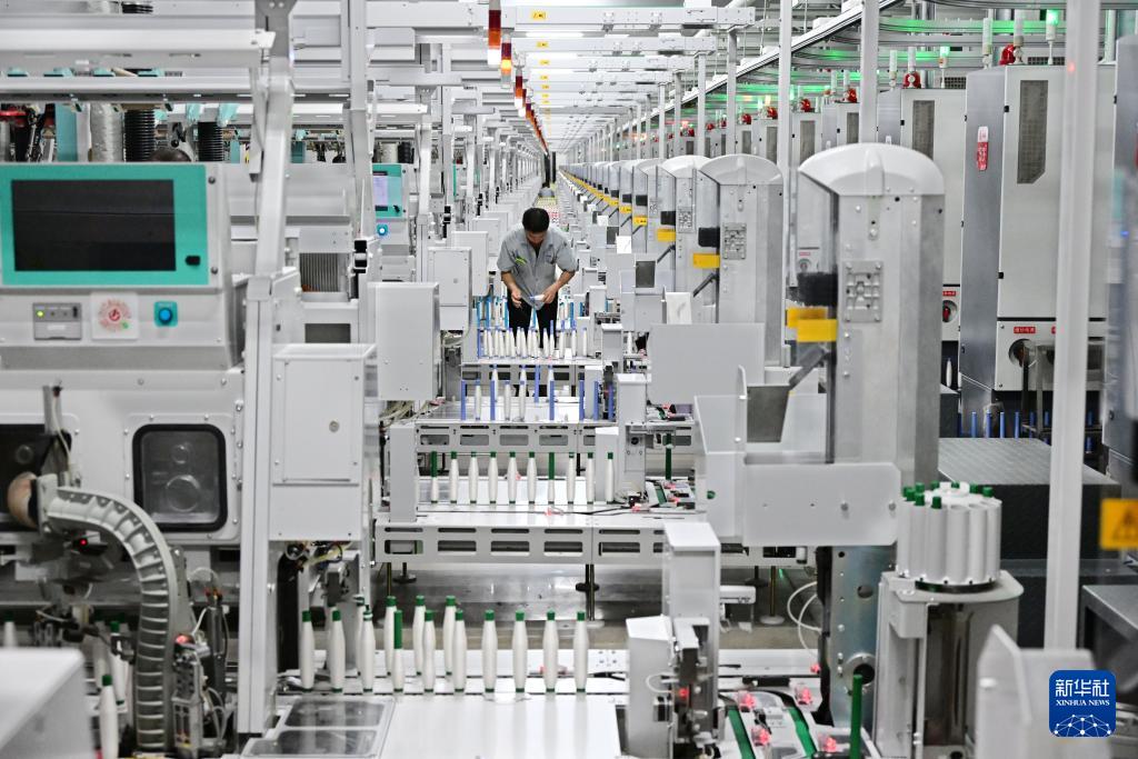 ??即墨區(qū)一家智慧紡紗企業(yè)的技術(shù)人員在維護全自動絡(luò)筒生產(chǎn)設(shè)備(3月25日攝)。