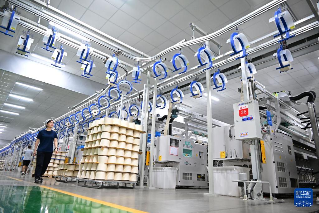 ??在即墨區(qū)一家智慧紡紗企業(yè),新安裝的自動化吊運(yùn)傳送設(shè)備在試運(yùn)行(3月25日攝)。