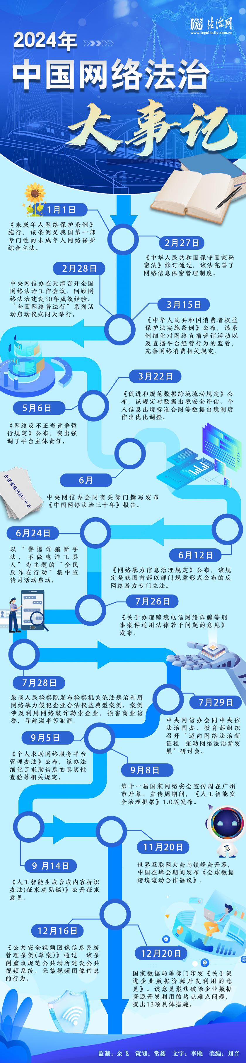 4月27日,國家互聯網信息辦公室發(fā)布《中國網絡法治發(fā)展報告(2024年)》。這是首部國家部門層面發(fā)布的網絡法治綜合性年度報告,既是《中國網絡法治三十年》報告的續(xù)篇,也是中國網絡法治發(fā)展年度報告的開篇。讓我們從這一年的大事記中,了解我國2024年網絡法治的發(fā)展歷程。