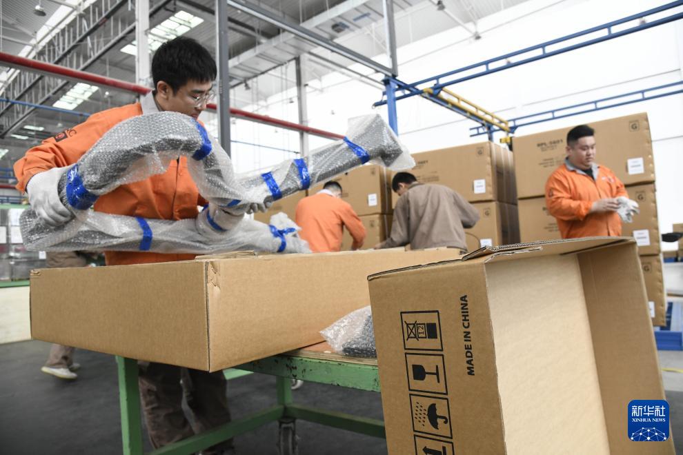 4月22日,青島英派斯健康科技股份有限公司員工在對出口產品進行抽檢。