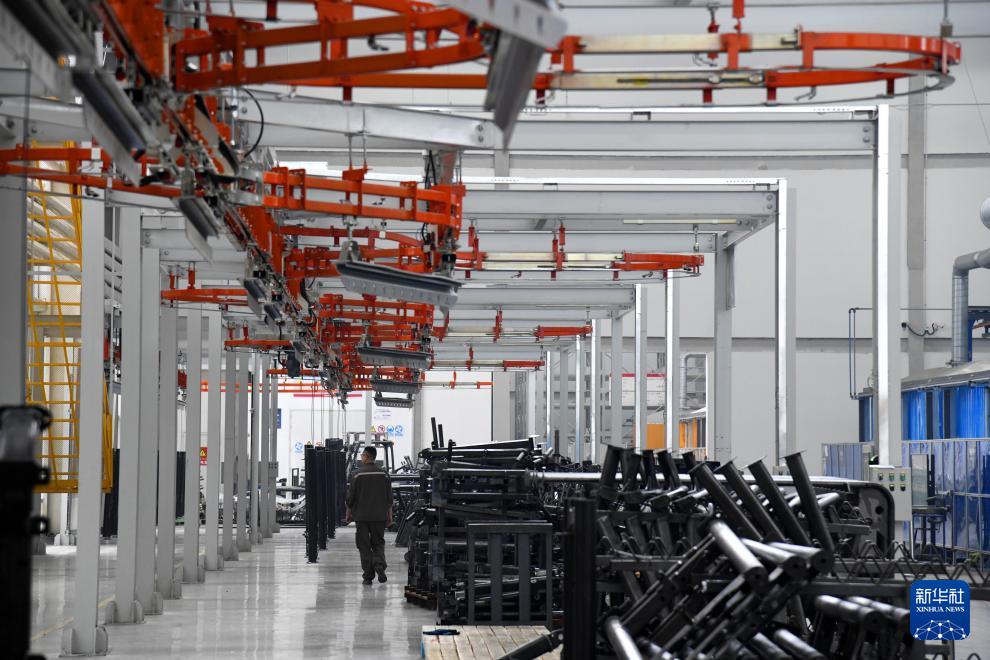 遍布青島英派斯健康科技股份有限公司智慧工廠內(nèi)的自動傳輸設(shè)備(4月22日攝)。