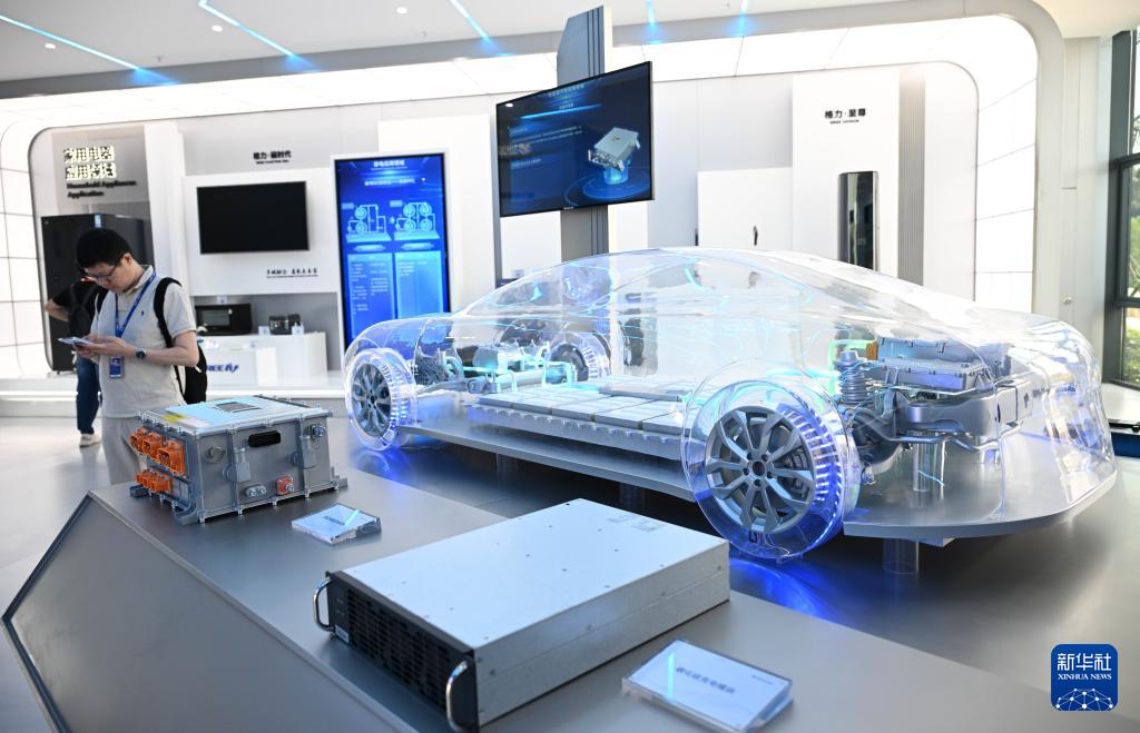 4月29日在珠海格力電子元器件有限公司拍攝的新能源汽車(chē)碳化硅充電模塊、驅(qū)動(dòng)電機(jī)控制器。