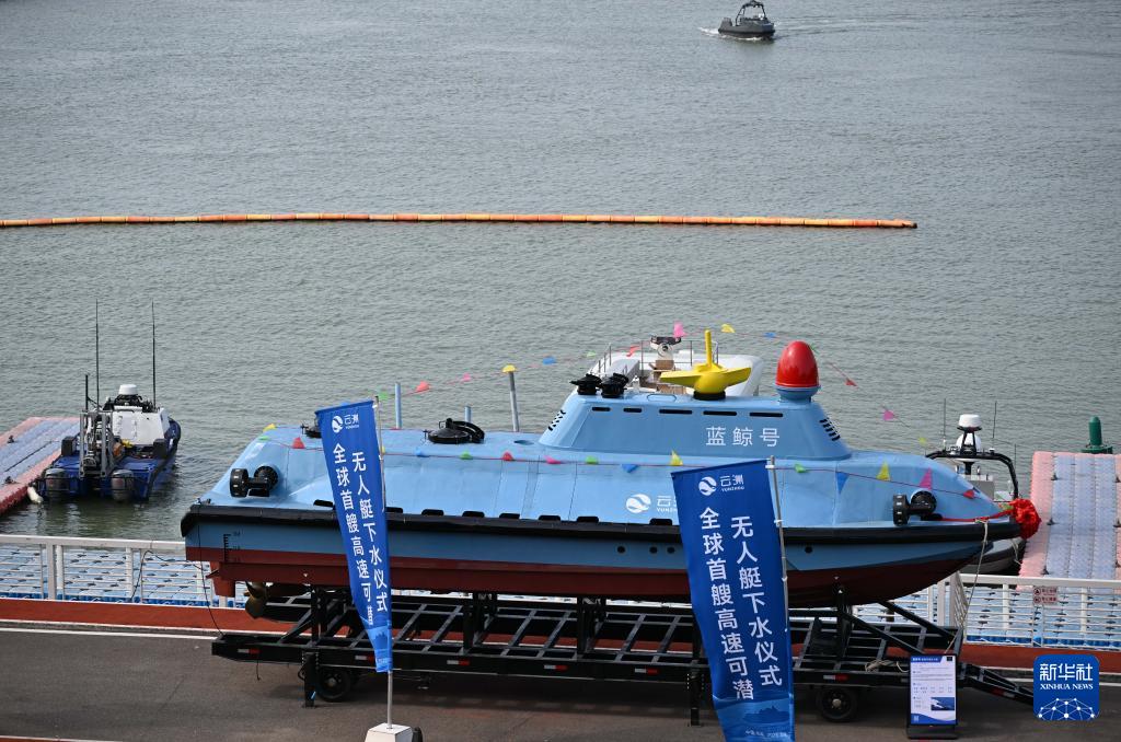 4月29日在珠海云洲智能科技股份有限公司拍攝的“藍(lán)鯨號”高速可潛無人艇。