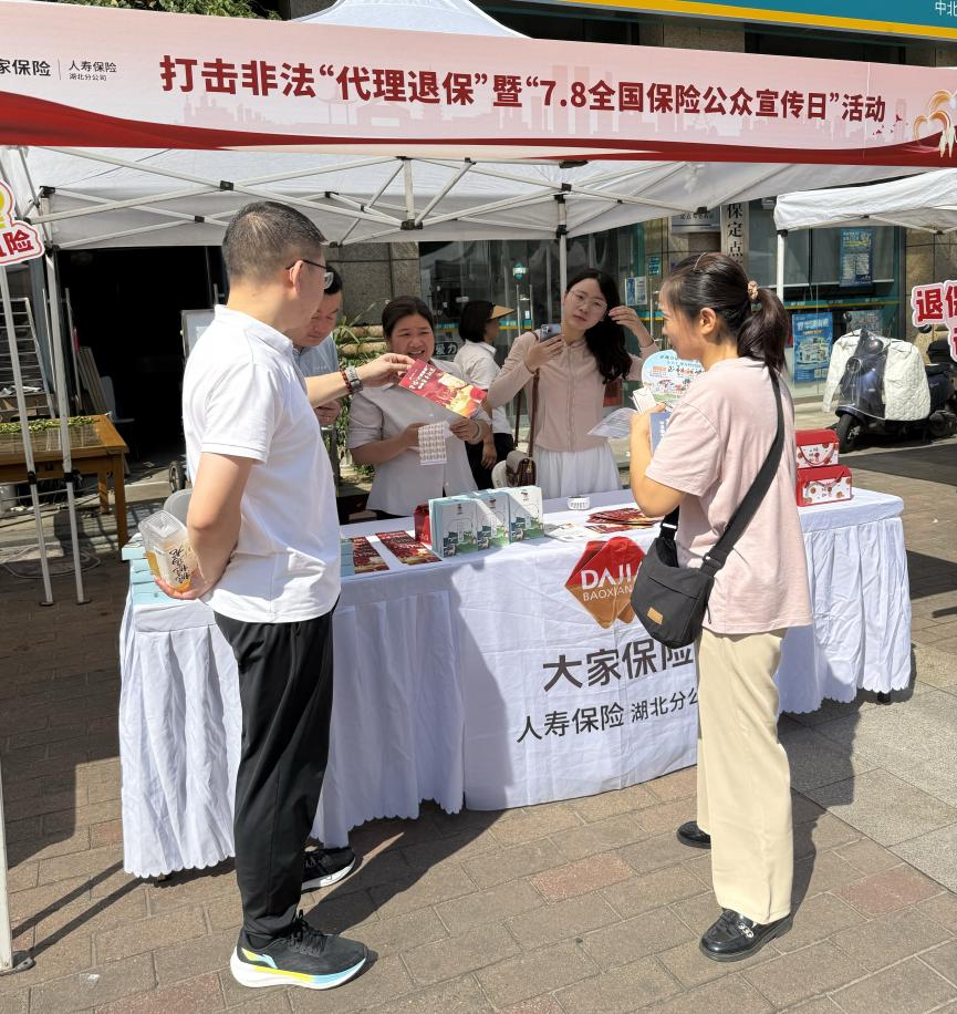7月5日,在2025年“7.8全國(guó)保險(xiǎn)公眾宣傳日”來(lái)臨之際,大家人壽湖北分公司與武漢市12家金融機(jī)構(gòu)一道,冒著酷暑走進(jìn)武昌區(qū)復(fù)地東湖國(guó)際武重社區(qū),積極參加由國(guó)家金融監(jiān)督管理總局湖北監(jiān)管局領(lǐng)導(dǎo)、湖北省保險(xiǎn)行業(yè)協(xié)會(huì)指導(dǎo)、極目新聞主辦的“向非法代理退保說(shuō)不,我們?cè)谛袆?dòng)”宣傳活動(dòng)。本次活動(dòng)以打擊非法“代理退保”暨“7.8全國(guó)保險(xiǎn)公眾宣傳日”為主題,吸引了眾多社區(qū)居民參與,以豐富多元的形式掀起社區(qū)公眾反詐防騙熱潮。