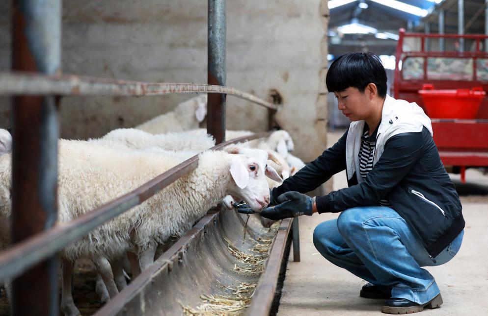 在富民新村養(yǎng)殖區(qū)的養(yǎng)殖暖棚內(nèi),養(yǎng)殖戶蒲萬(wàn)林在查看肉羊長(zhǎng)勢(shì)。新華社記者 郭剛 攝