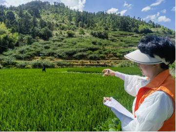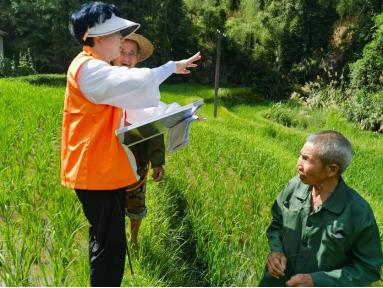 驗(yàn)標(biāo)員曾燕玲的背包里,全縣農(nóng)險(xiǎn)驗(yàn)標(biāo)分布圖已標(biāo)注百余村落坐標(biāo)。密密麻麻的紅點(diǎn),對應(yīng)著數(shù)千塊分散田地的勘驗(yàn)記錄。在熾烈的陽光下,灼熱的田埂仿佛要將鞋底融化。而她和農(nóng)險(xiǎn)伙伴們依舊頂著烈日,每日步行超萬步,日均完成8個(gè)村莊的查勘驗(yàn)標(biāo)工作。