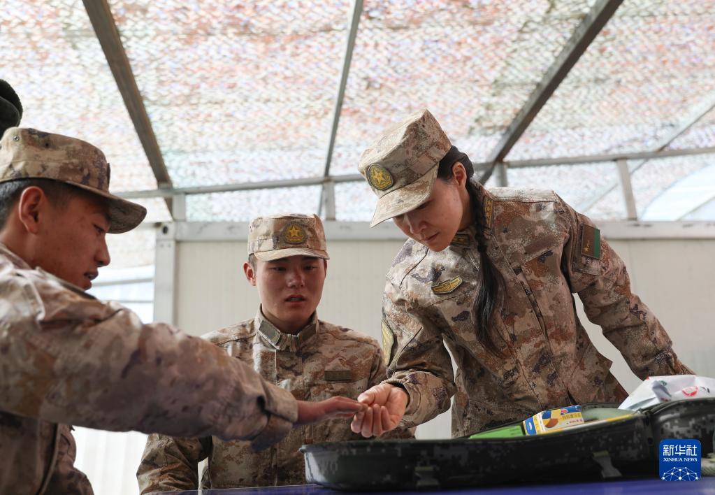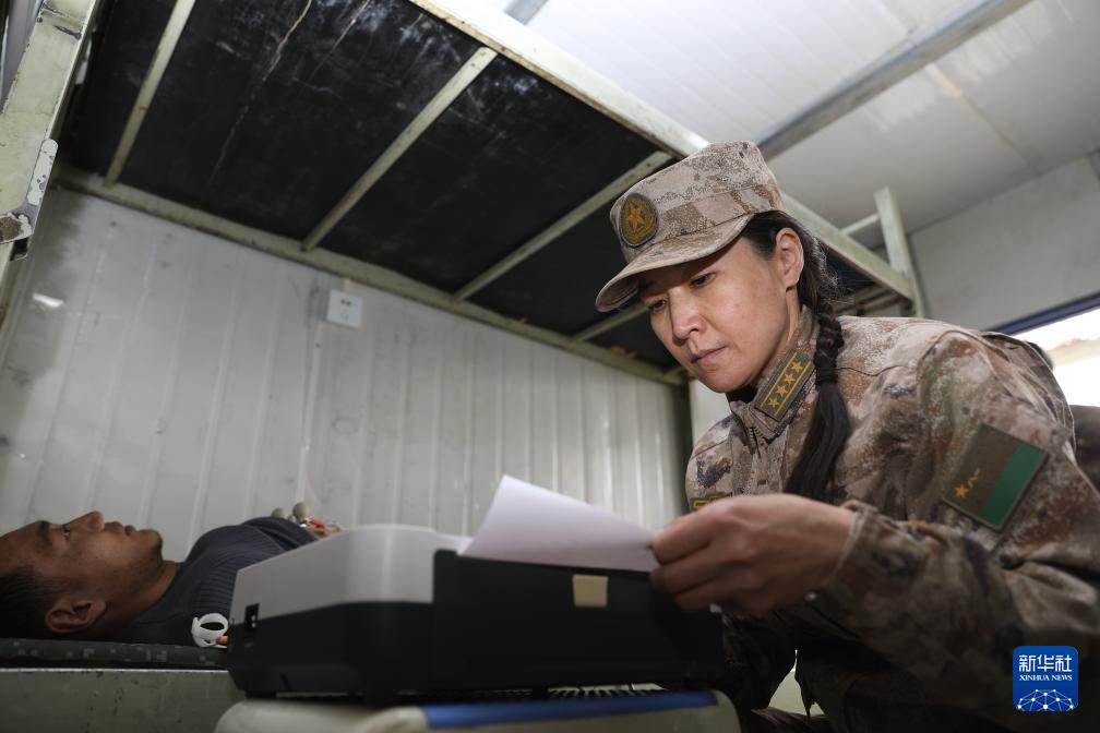 聯(lián)勤保障部隊(duì)第941醫(yī)院重癥醫(yī)學(xué)科主任張瑛在高海拔哨所巡診(2022年3月20日攝)。新華社發(fā)(孟釗 攝)