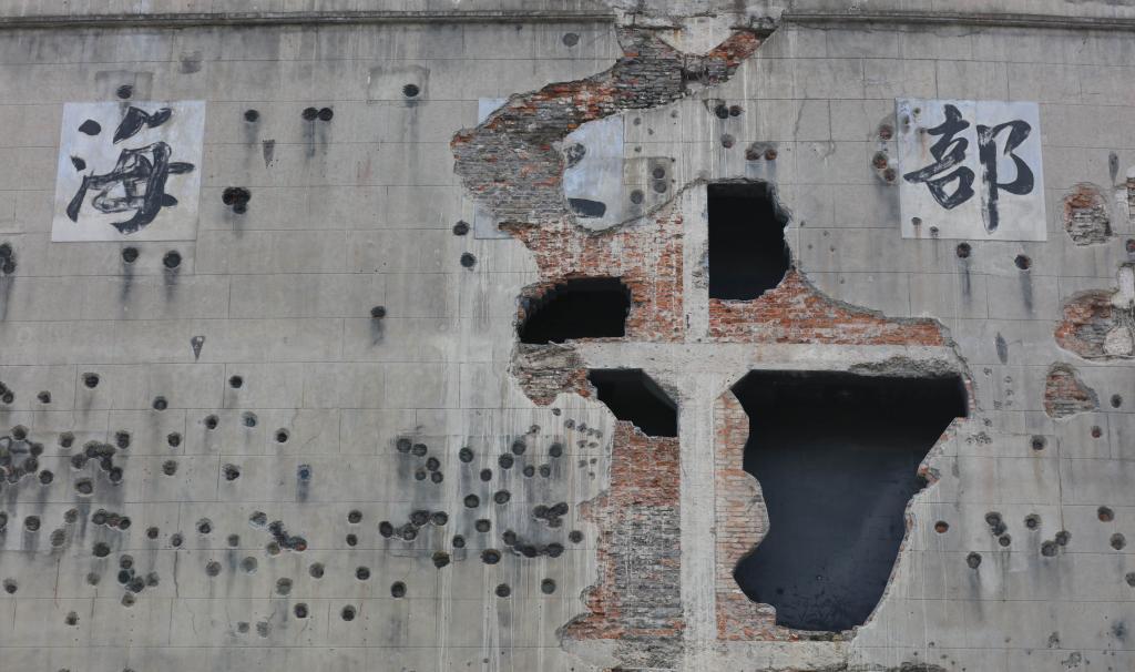一面約1500平方米的墻,可以承受多少枚炮彈的轟擊?8個(gè)炮彈孔、420余個(gè)槍彈孔,這是還原后的四行倉庫西墻。88年過去,這些孔洞仿佛仍在訴說著山河血淚。