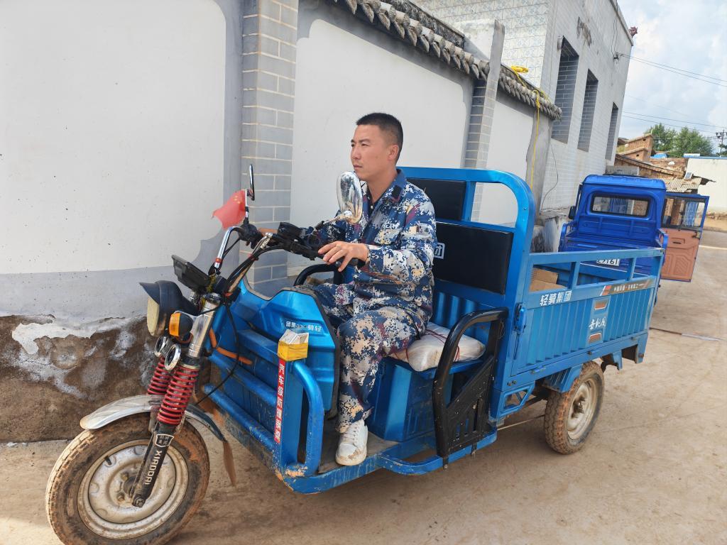 8月10日,王棟駕駛農(nóng)用車準(zhǔn)備運送物資。新華社記者 崔翰超 攝
