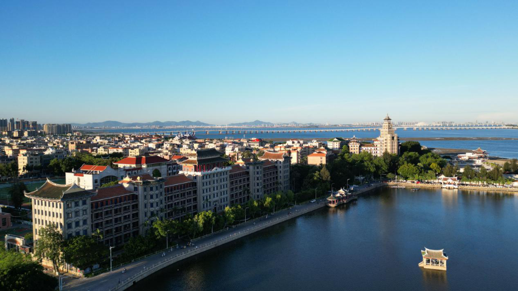 ↑福建省廈門集美中學(xué)。(無人機(jī)照片)鐘煒俊攝