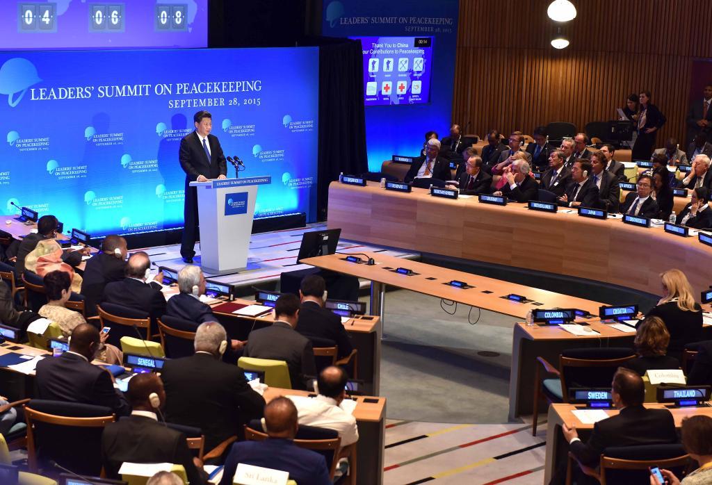 ??2015年9月,習(xí)近平總書記在紐約聯(lián)合國總部出席聯(lián)合國維和峰會(huì)并發(fā)表講話。新華社記者 李濤 攝