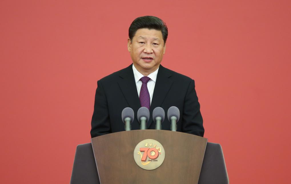 ??2015年9月,中國人民抗日戰(zhàn)爭勝利70周年紀(jì)念章頒發(fā)儀式在北京人民大會(huì)堂隆重舉行。習(xí)近平總書記發(fā)表重要講話。新華社記者 龐興雷 攝