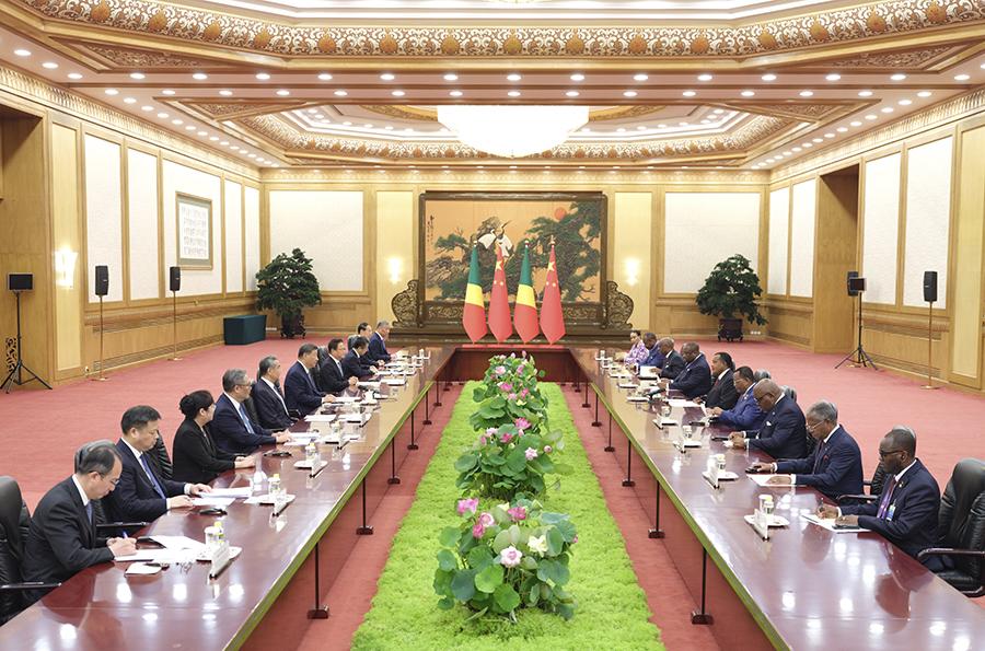 習(xí)近平強(qiáng)調(diào),剛果(布)擔(dān)任中非合作論壇非方共同主席國(guó)以來,同中方一道積極推動(dòng)北京峰會(huì)成果落實(shí),取得可喜成績(jī)。中方愿同非方共同實(shí)施好“十大伙伴行動(dòng)”,打造綠色產(chǎn)業(yè)、電子商務(wù)和支付、科技、人工智能等新增長(zhǎng)點(diǎn),推動(dòng)中非合作提質(zhì)升級(jí)。當(dāng)前國(guó)際形勢(shì)變亂交織,中國(guó)和非洲作為全球南方重要成員,要肩負(fù)起捍衛(wèi)國(guó)際公平正義、維護(hù)世界和平、促進(jìn)共同發(fā)展的歷史責(zé)任,攜手推動(dòng)構(gòu)建人類命運(yùn)共同體。