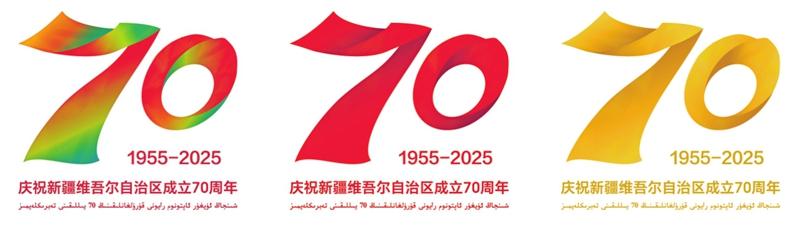 新疆維吾爾自治區(qū)成立70周年慶?;顒訕俗R主體為律動扭轉(zhuǎn)的數(shù)字“70”,取絲路沙漠綠洲之綠、石榴花之紅與胡楊林之黃為主色,展現(xiàn)出新疆維吾爾自治區(qū)的錦繡山川,紅黃綠色漸變交織出璀璨的文化脈絡(luò),象征70年來新疆各族人民在中國共產(chǎn)黨的領(lǐng)導下,在偉大祖國的懷抱中,同心協(xié)力、砥礪奮進,在中國式現(xiàn)代化進程中更好建設(shè)美麗新疆的蓬勃朝氣?!?955—2025”代表新疆維吾爾自治區(qū)成立70周年。標識凸顯中華民族精神,反映新疆歷史底蘊,營造出喜慶、熱烈、祥和的氛圍。同時附兩款單色標識。