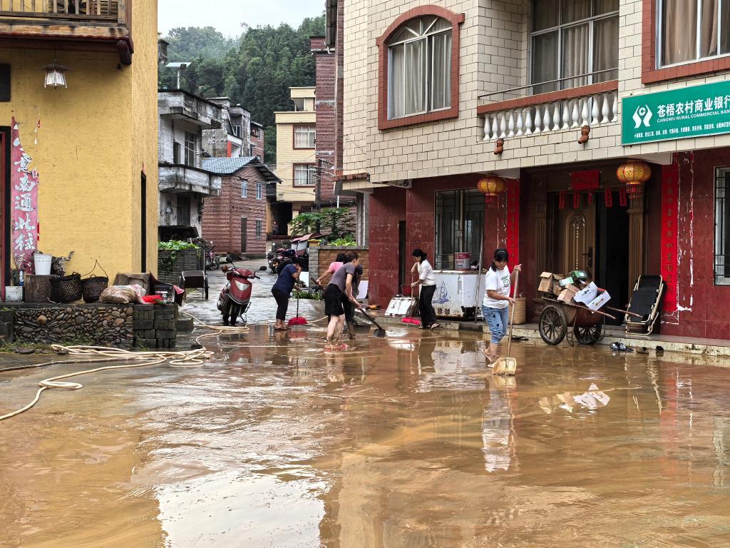洪水退去,黨員干部與群眾一起展開(kāi)道路清淤工作。(受訪者供圖)