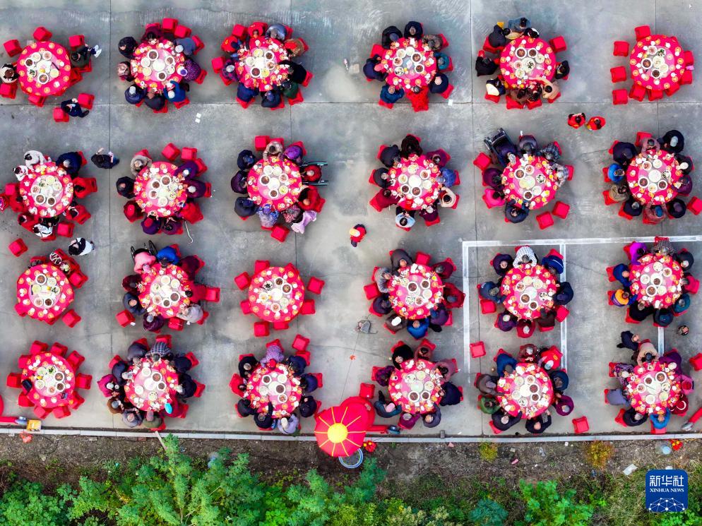 10月26日拍攝的江蘇省泰州市姜堰區(qū)白米鎮(zhèn)馬溝村第三屆重陽節(jié)“百壽宴”現(xiàn)場(無人機(jī)照片)。