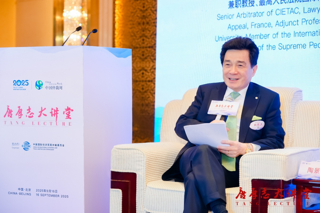 王承杰在致辭中介紹,唐厚志大講堂是為了紀(jì)念我國仲裁事業(yè)的重要奠基人和開拓者唐厚志先生而設(shè)立。近年來,黨和國家高度重視并積極推動(dòng)仲裁事業(yè)發(fā)展,黨的二十屆三中全會(huì)對(duì)深化仲裁制度改革,健全國際商事仲裁制度、培育國際一流仲裁機(jī)構(gòu)提出了明確要求;今年7月,司法部專門召開涉外仲裁工作座談會(huì),研究加快推進(jìn)涉外仲裁工作高質(zhì)量發(fā)展,實(shí)施中國特色的國際一流仲裁機(jī)構(gòu)培育工程。9月12日,十四屆全國人大常委會(huì)第十七次會(huì)議表決通過新修訂的仲裁法,自2026年3月1日起施行,為國際商事仲裁中心建設(shè)提供立法保障。
