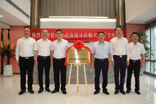 廣西賀州市政協(xié)主席陳遠(yuǎn)明,副主席郭業(yè)山,秘書長(zhǎng)羅巧科,市政協(xié)委員孫俊平等共同為“粵港澳大灣區(qū)政協(xié)委員聯(lián)絡(luò)中心(深圳)”揭牌。(廣西賀州市政協(xié)供圖)