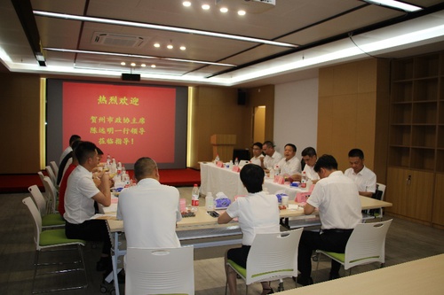 6月16日,廣西賀州市政協(xié)主席陳遠(yuǎn)明一行走訪市政協(xié)委員、恒希建材董事長(zhǎng)陳志海,聽取企業(yè)發(fā)展情況介紹。(廣西賀州市政協(xié)供圖)