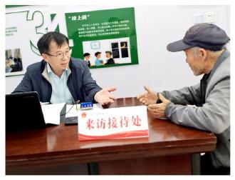 殷勇代表(左)在工作室接待來(lái)訪群眾。