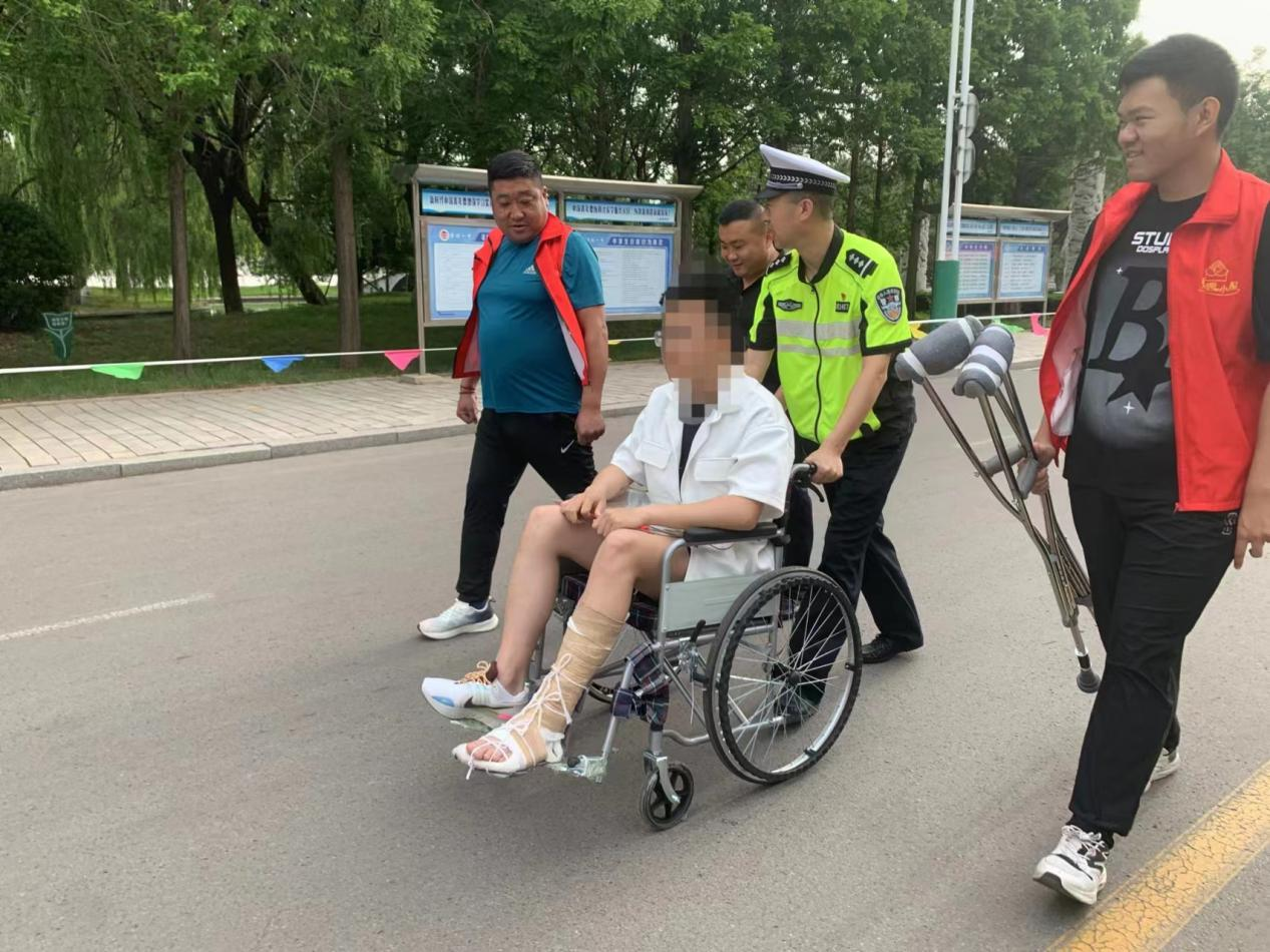 6月7日上午7時(shí)10分許,山東省諸城市公安局交警大隊(duì)民警在諸城一中高考考點(diǎn)執(zhí)勤時(shí),接到一名考生家長(zhǎng)求助稱,其兒子在高考前左腳跖骨不慎骨折,打上了厚厚的石膏,導(dǎo)致行動(dòng)不便。由于考點(diǎn)周邊道路實(shí)行交通管制以保障高考順利進(jìn)行,社會(huì)車輛無法通行,所以家長(zhǎng)向執(zhí)勤交警求助。