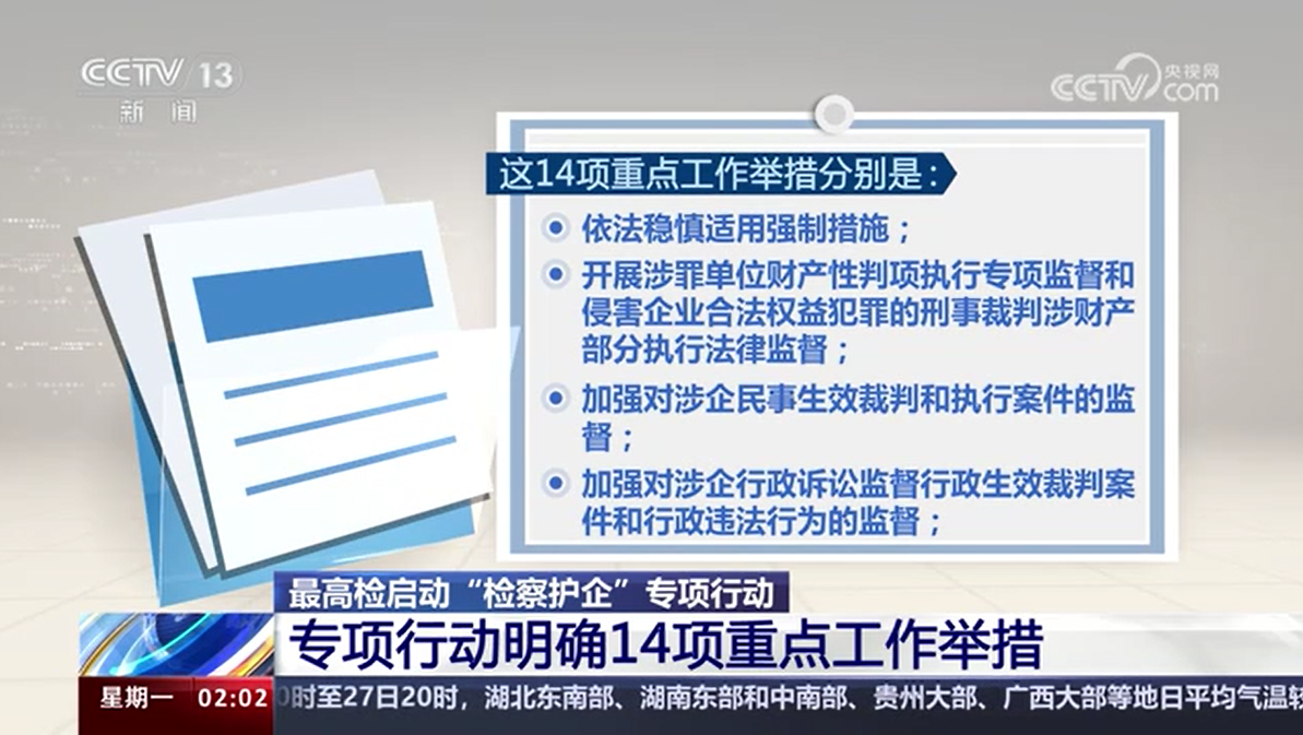 最高檢啟動“檢察護企”專項行動 專項行動明確14項重點工作舉措