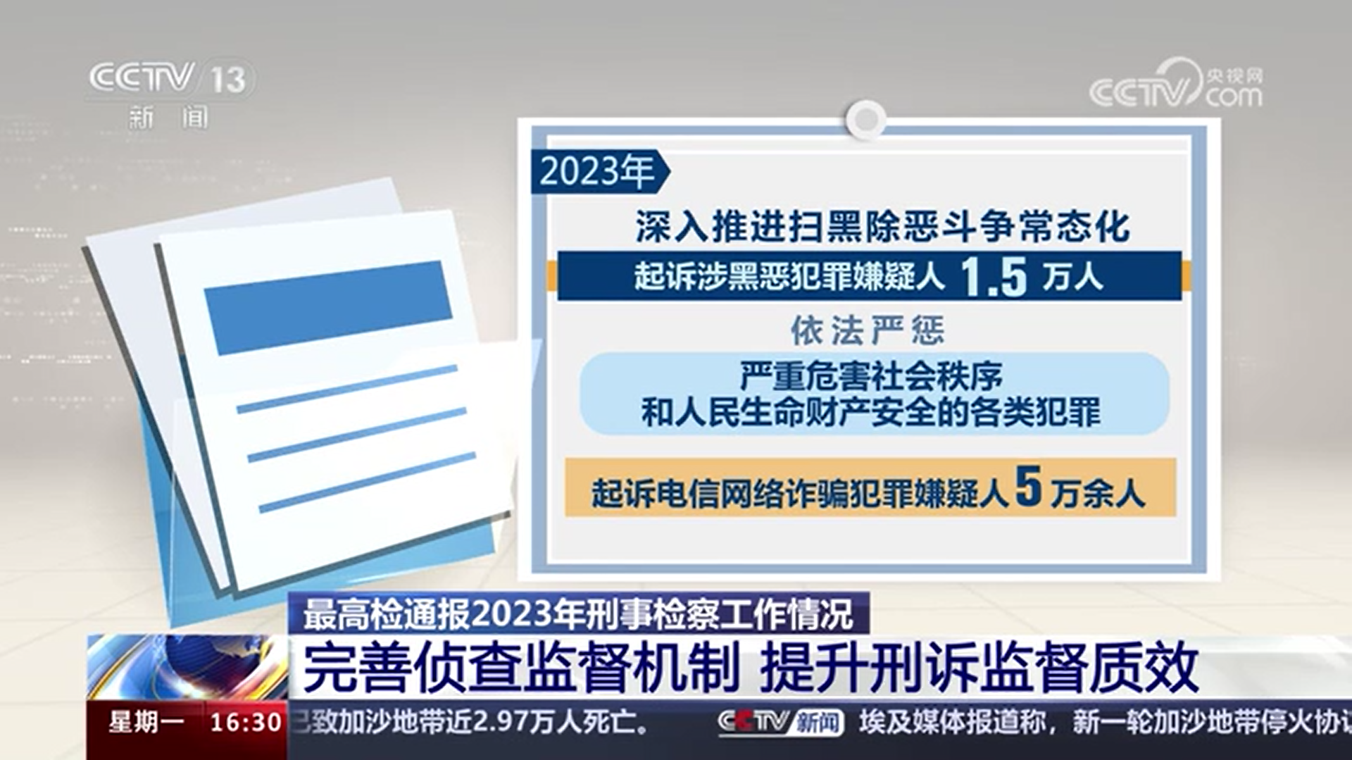 最高檢通報2023年刑事檢察工作情況 完善偵查監(jiān)督機制 提升刑訴監(jiān)督質(zhì)效
