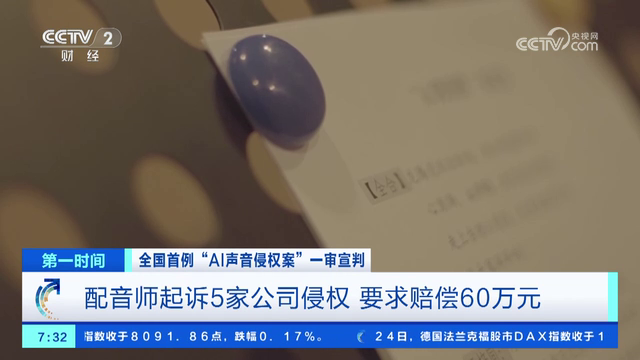 全國首例“AI聲音侵權(quán)案”一審宣判 配音師起訴5家公司侵權(quán) 要求賠償60萬元