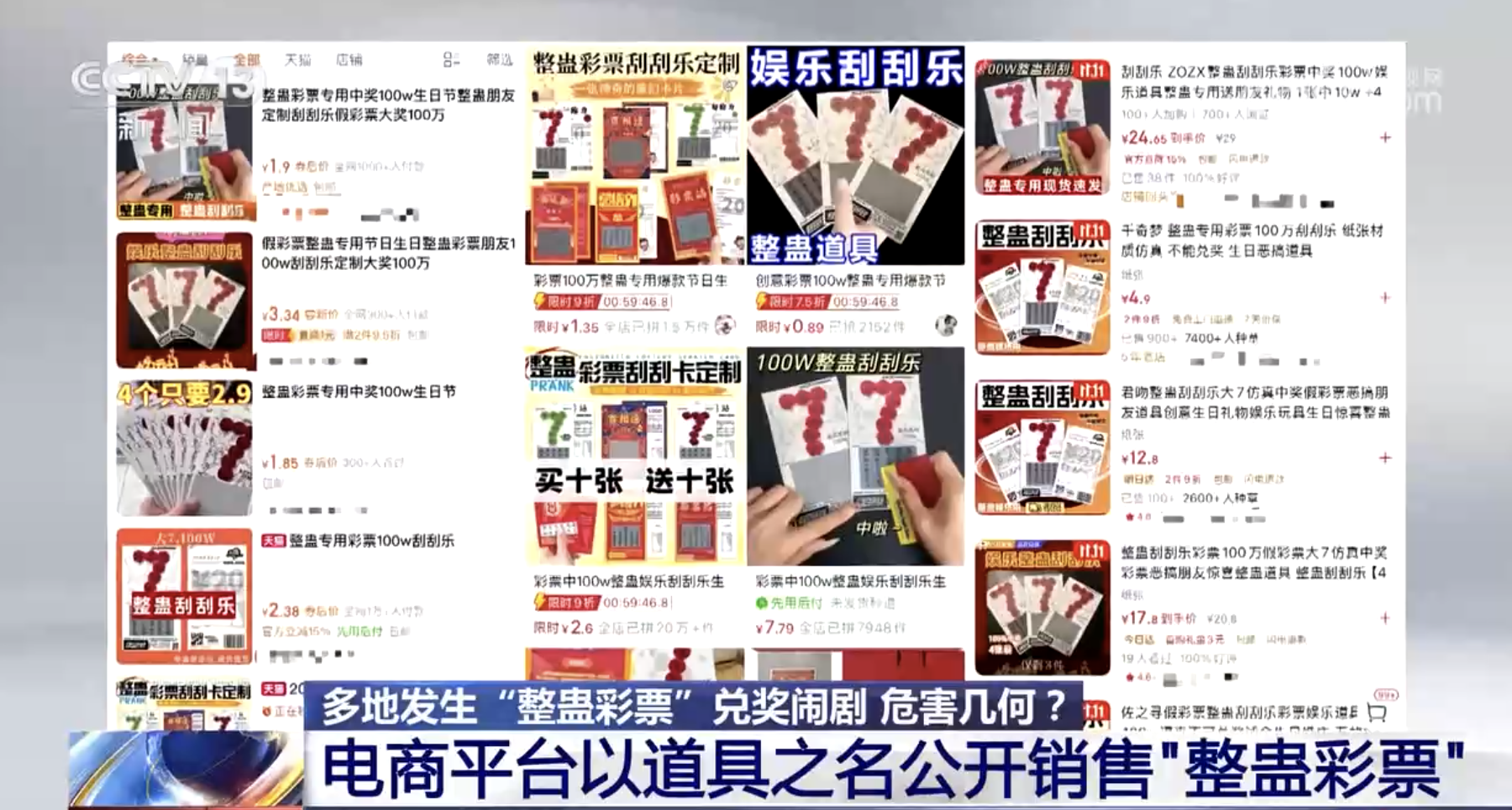 多地發(fā)生“整蠱彩票”兌獎(jiǎng)鬧劇 危害幾何?電商平臺(tái)以道具之名公開銷售“整蠱彩票”