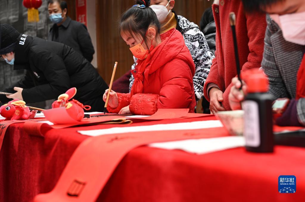1月12日,在四川省內(nèi)江市東興區(qū)東興老街,一名小朋友在寫春聯(lián)。新華社發(fā)(唐明潤攝)