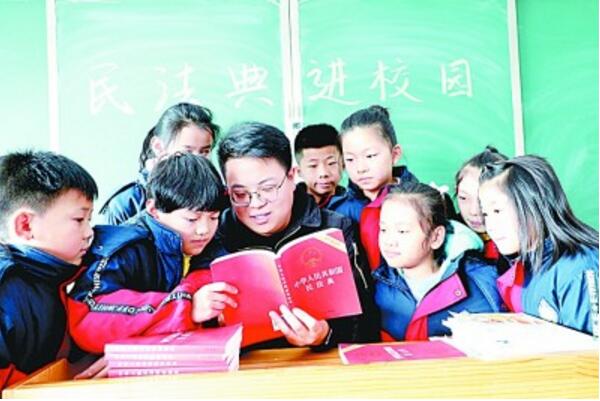 河北省邢臺市平鄉(xiāng)縣司法局工作人員為孩子們講解民法典知識。光明圖片/范欽龍攝