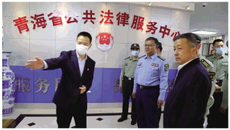 圖為青海軍地領(lǐng)導(dǎo)到省公共法律服務(wù)中心調(diào)研。 白皛 攝