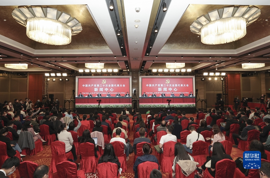 10月19日,中國共產黨第二十次全國代表大會新聞中心舉行記者招待會。中央政法委副秘書長訚柏,最高人民法院黨組副書記、分管日常工作的副院長、一級大法官賀榮,最高人民檢察院黨組副書記、分管日常工作的副檢察長、一級大檢察官童建明,公安部黨委委員、副部長、國家移民管理局黨組書記、局長許甘露,司法部黨組成員、副部長左力圍繞“堅持以習近平法治思想為指引 努力建設更高水平的法治中國”主題與記者交流。